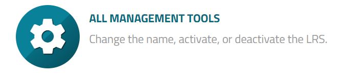 The initial settings you choose when creating the LRS can be modified at any time. This includes strict mode, verbose logging mode, and the LRS name. Choose the options "LRS Settings" from "All Management Tools". Be careful when changing the name! This will update the URL that your Learning Record Providers should send data to.