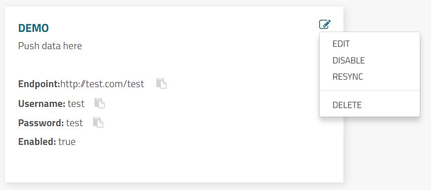 The values here are pretty self-explanatory. We need a name and description. These are just for you to keep track of what is what. We also need the full xAPI URL, the username and the password on the remote system to use to post data. Since we retain these in our database, they are encrypted when not in use. Fill out the form and click OK. The Statement Forwarding page will now display a card for the upstream.