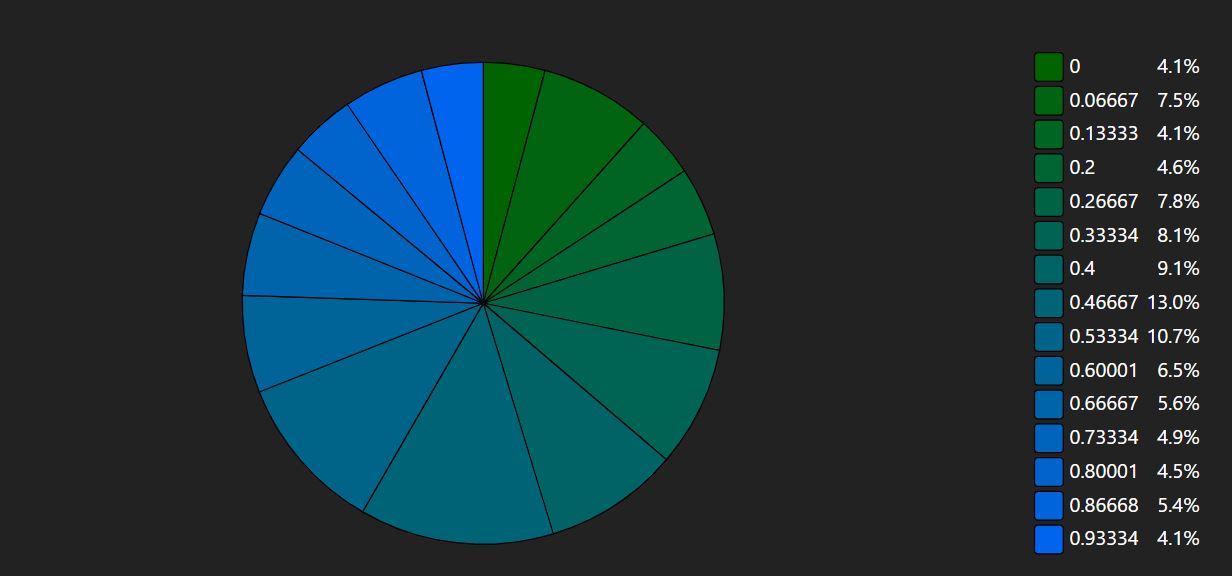 A piechart uses 'slices' instead of 'columns'. Here we compute a gradient, just coloring the slice based on its position in the array.