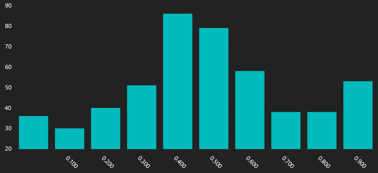 Because the rendering expressions actually return JSON objects, you can continue to process the document array after the rendering command! This little trick can be use to customize the colors, axis, labels, or any other components of a chart. Veracity uses AmCharts for rendering, so you can reference their JSON specification here to learn about all the things you can change. Heres a few examples below.