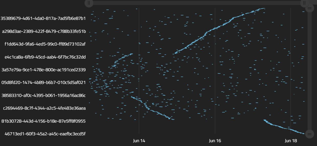 A sankeyChart can be used to visualize the flow through a series of steps. Note that the order parameter of the preceding $pathsToNodes MUST be true, or else the graph can have cycles. The renderer cannot visualize graphs with cycles.