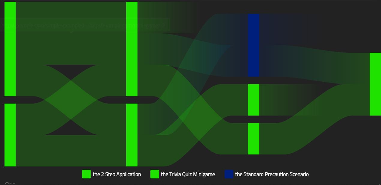 Using the above tools, you can visualize paths and flows. However, that's not all! You can do logic over the nodes before rendering, or even use them as inputs to further logic. As an exercise for the reader - how would you find the average score of students that took the standard-scenario first?